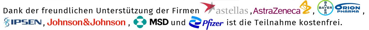 Dank der freundlichen Unterstützung durch unsere Industriepartner ist die Teilnahme für Urolog:innen und Onkolog:innen kostenlos.