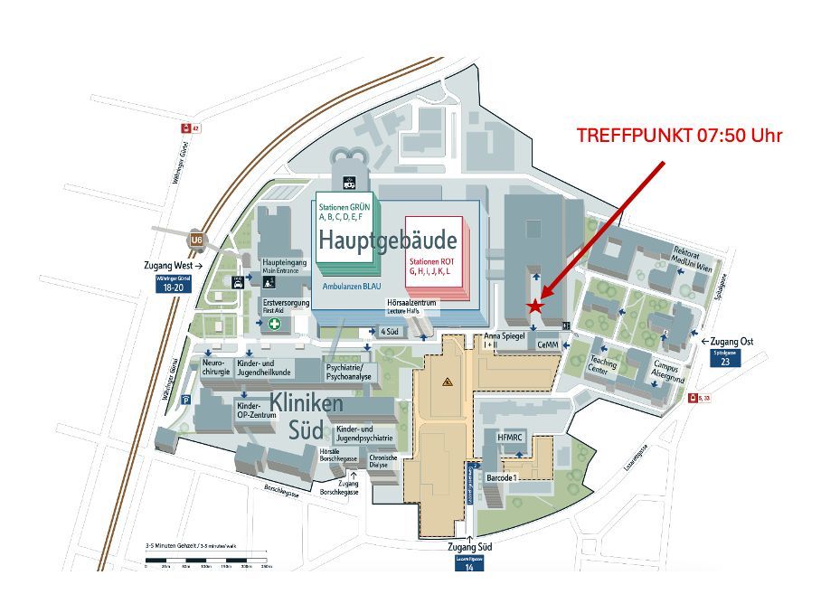 Treffpunkt: um 7:50 Uhr vor dem Eingang des Centers for Biomedical Research
